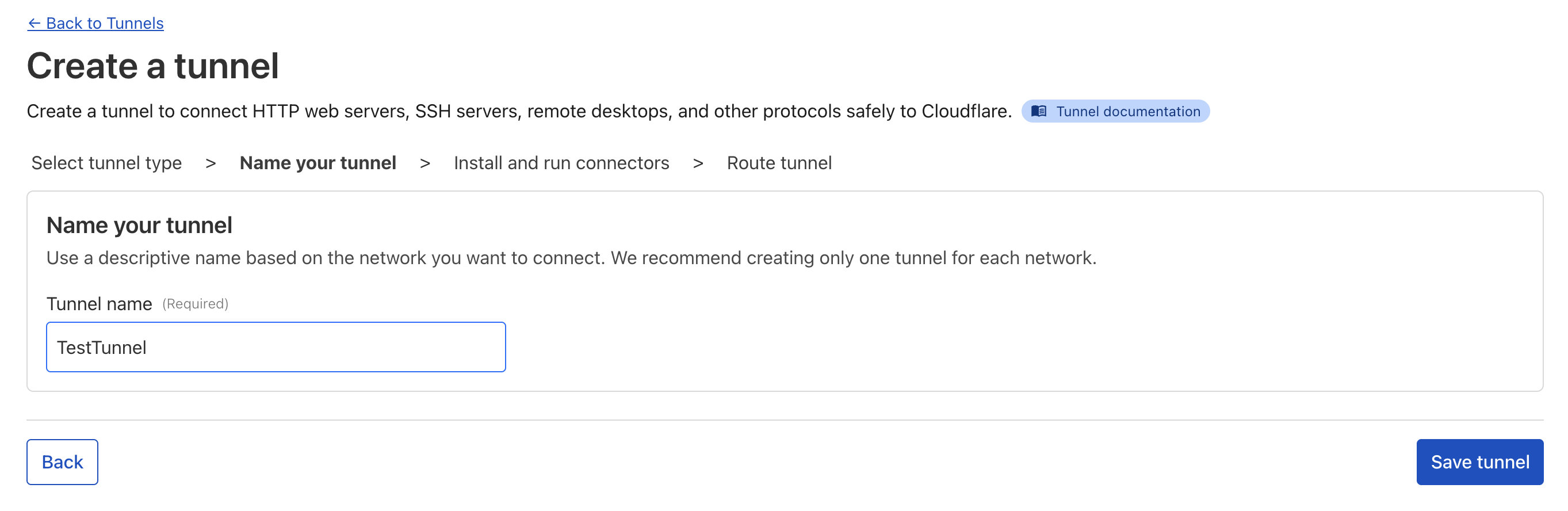 Create a tunnel을 클릭하자.