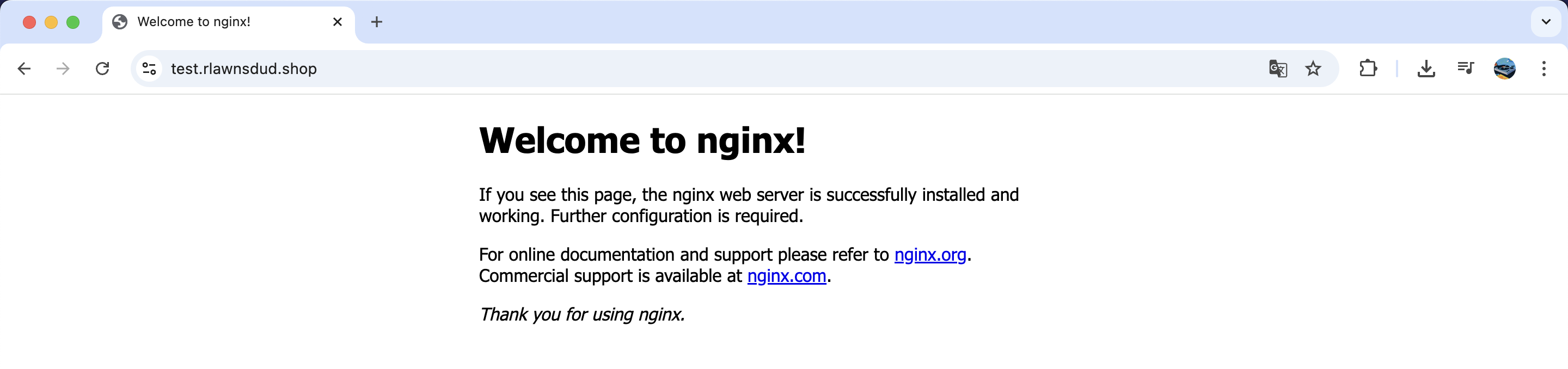 그리고 필자 기준으로 test.rlawnsdud.shop 도메인으로 접속해보자.
