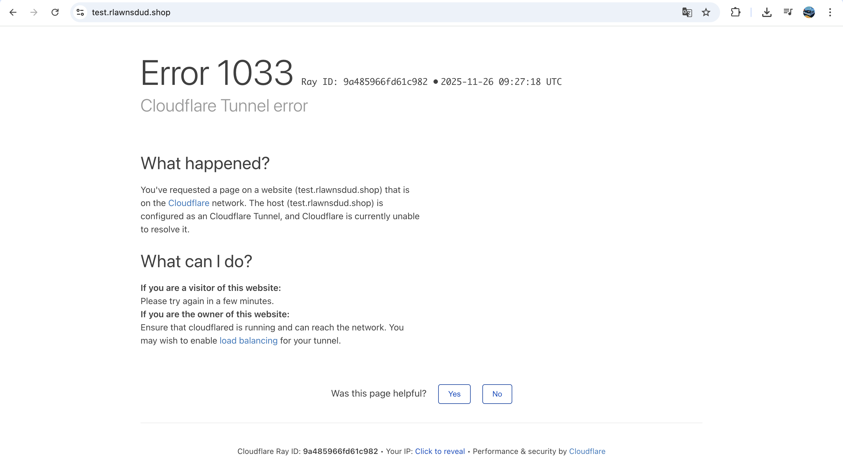 그럼 사진과 같이 정상적으로 접속되는 것을 볼 수 있다. 앞서 말했 듯 여기에 Warp이나 AuthN 서비스(Zero Trust Access 등)를 연동해서 쓰는 것이 좋을 것이다.