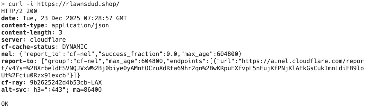 실제 운영 환경에선 ELB나 CloudFront 등의 서비스를 앞단에 붙이는 것이 좋고, 보안 그룹에서 Cloudflare IP 대역만 허용하는 등의 방법을 사용하자.