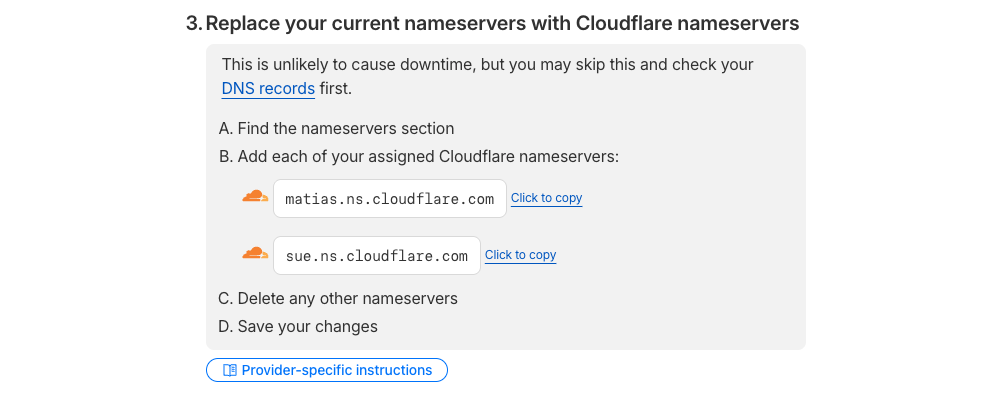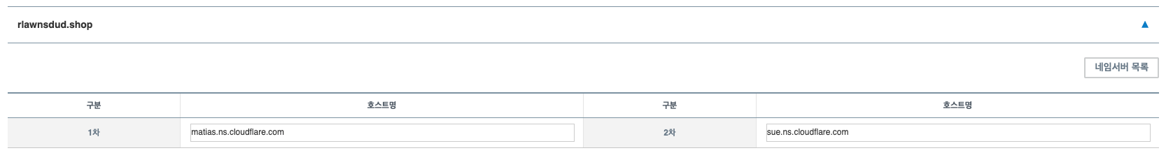 다음으로 DNS 네임 서버를 설정해야 하는데, 도메인을 등록하고 나면 아래와 같이 네임 서버를 제공해준다. 도메인 설정에서 이 네임 서버로 바꿔주면 된다.