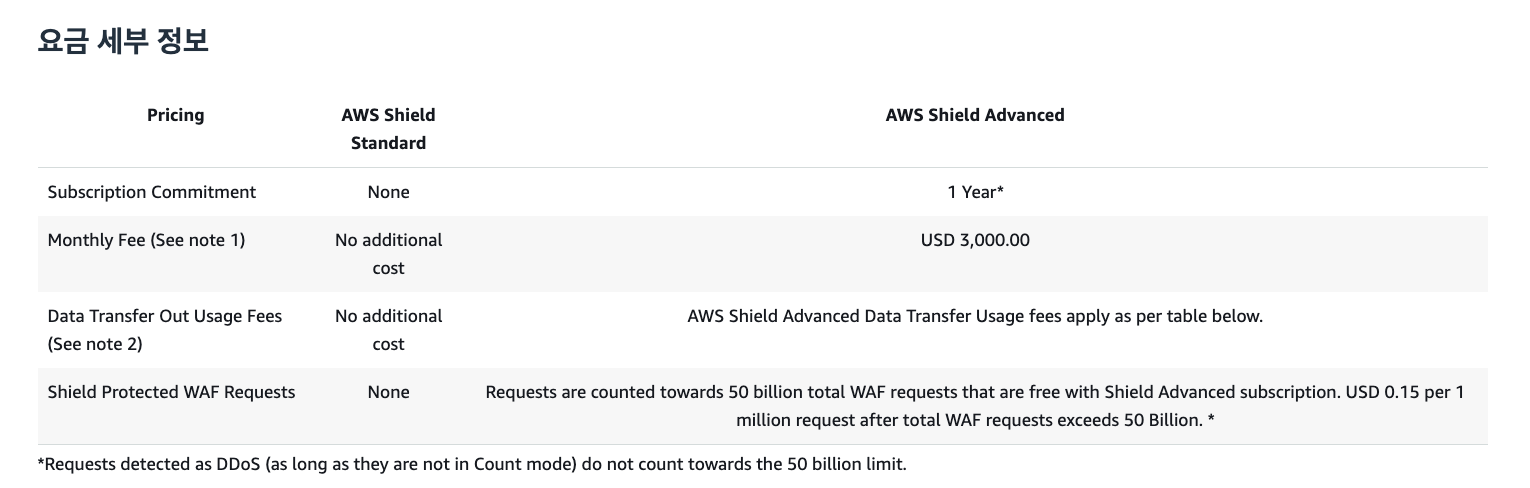 다만 Shield Advanced의 경우 월 3,000달러 부터 시작하기 때문에 엔터프라이즈 급이 아닌 개인이나 작은 팀에서 사용하기엔 어려움이 있다.