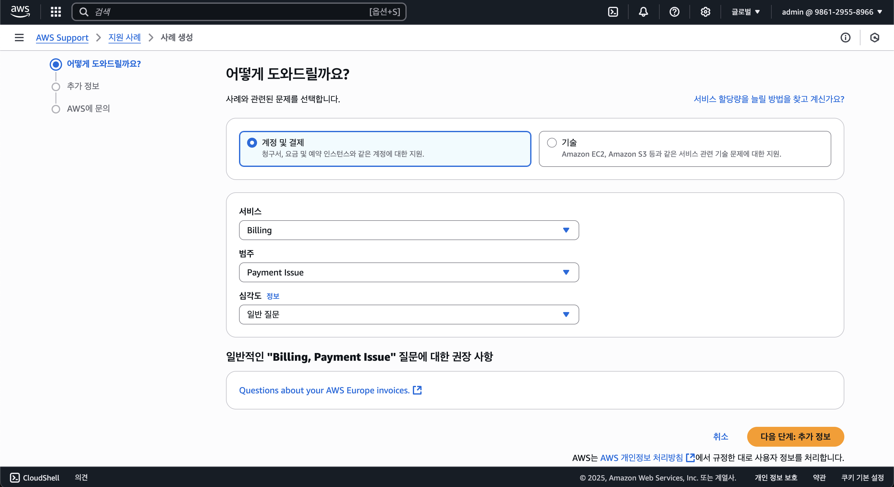 일단 지원센터에 들어가 사례를 생성하도록 하자.