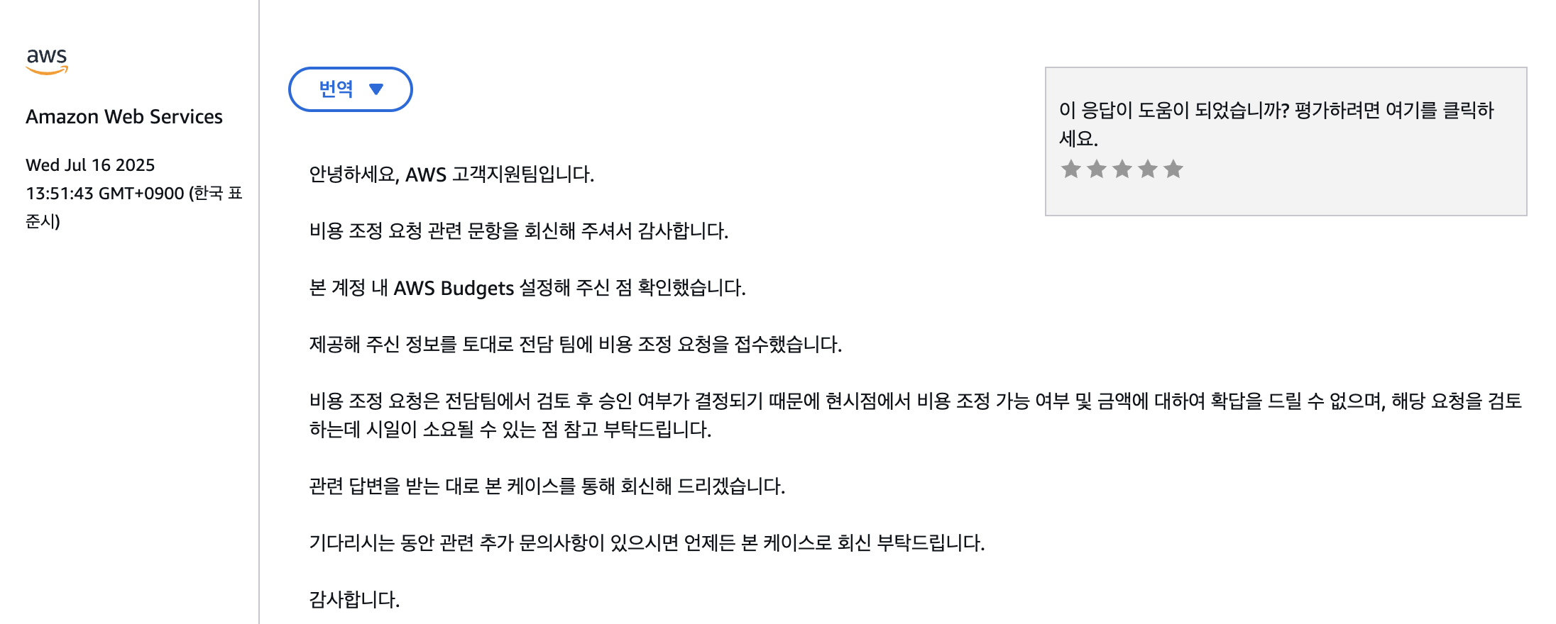 몇시간 정도 기다리니 이런 답변이 도착했다.