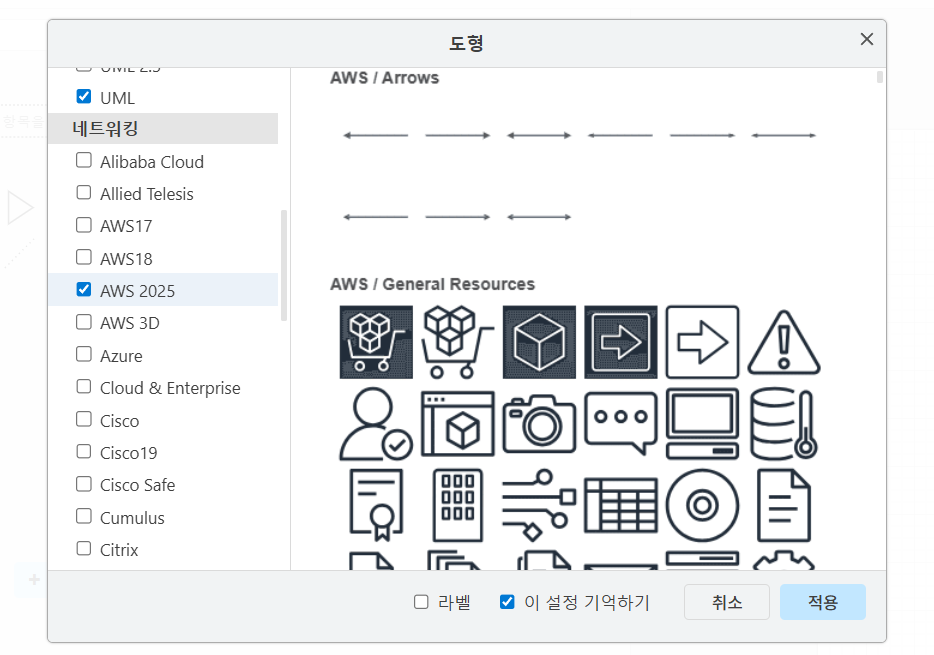 그러면 AWS와 관련된 도형들이 생겨난다.