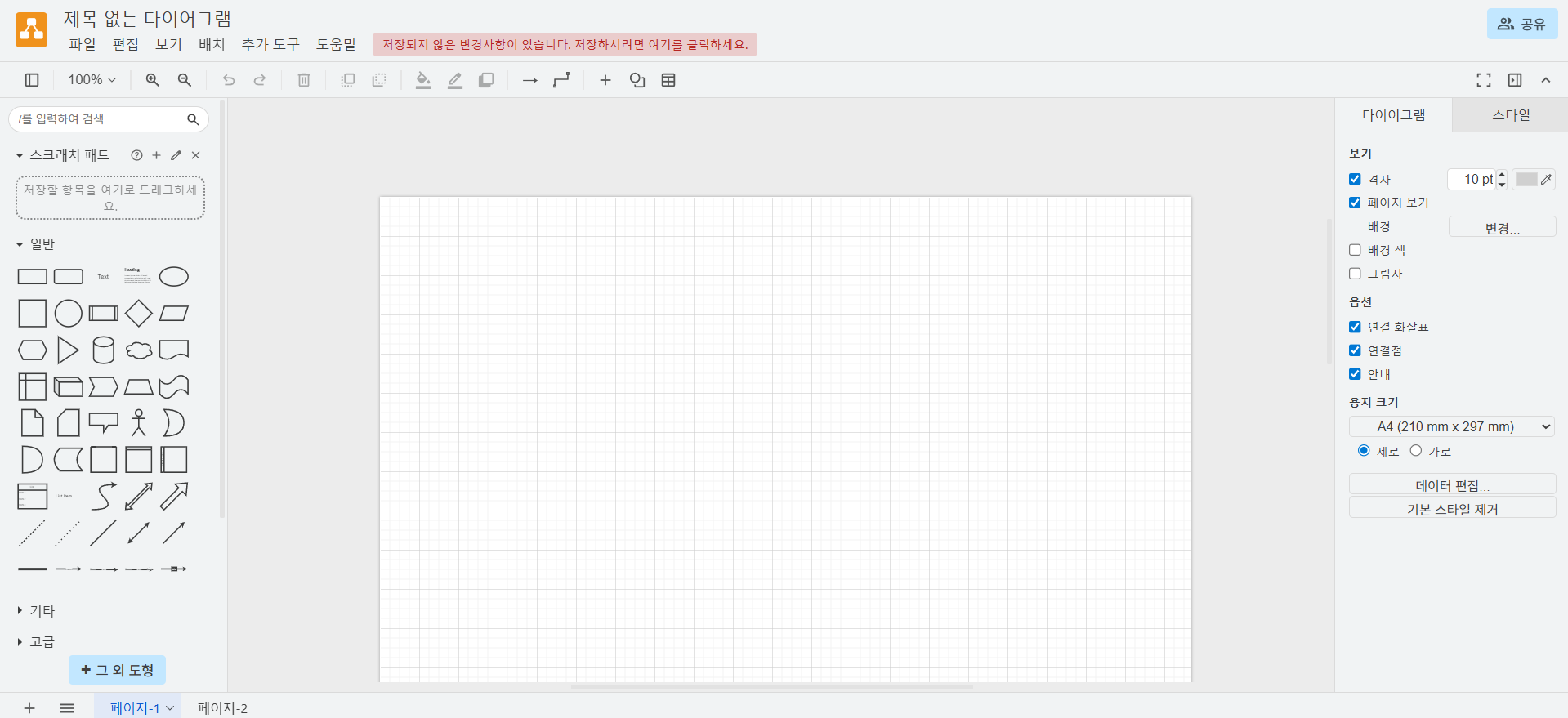먼저 draw.io에 접속하면 아래와 같은 화면이 나온다.