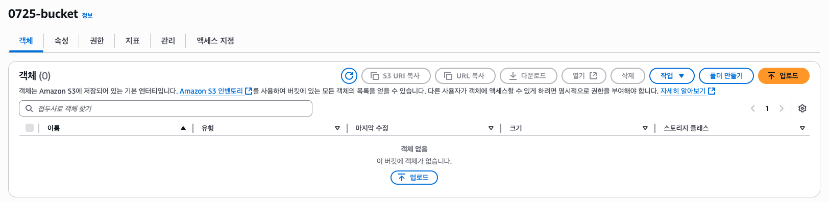 API 테스트엔 간단하게 Postman을 사용하였다. 먼저 S3엔 아무것도 없는 모습을 볼 수 있다.